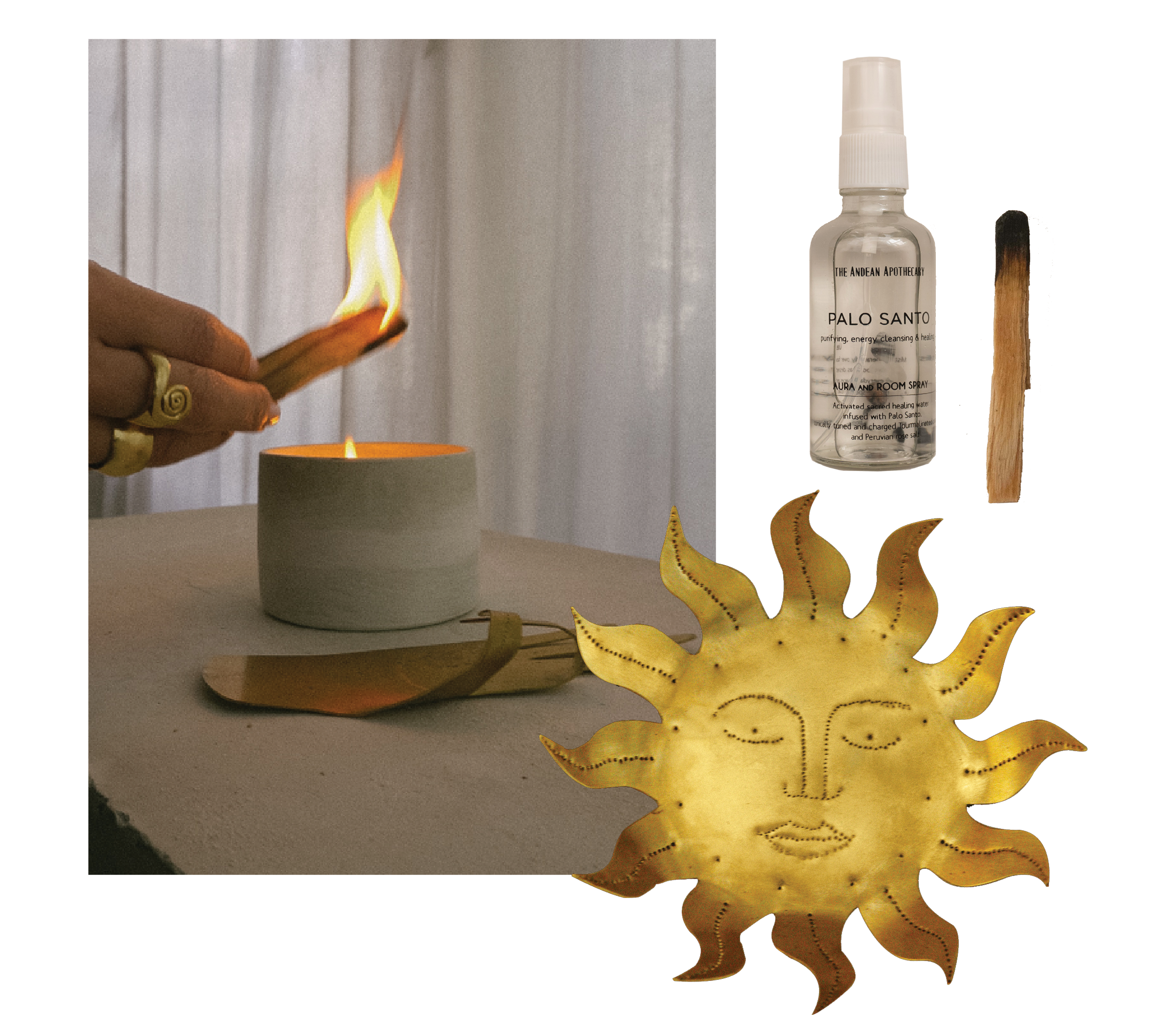 Burning sacred aromatics in my Okra Sun incense burner is a simple but powerful way to clear the space and ground myself. I like to use palo santo (a gorgeously scented wood from South America). And since discovering palo santo spray from the Andean Apothecary, I’m never without a bottle of this magical stuff.