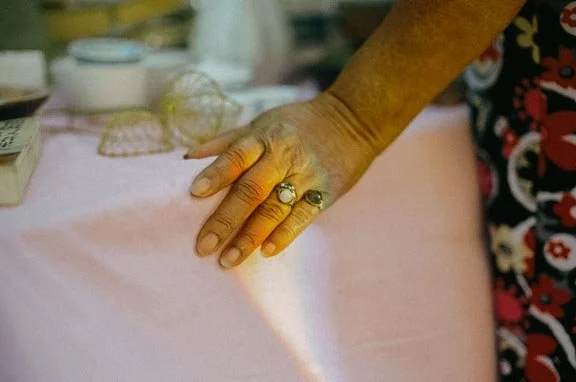 My very first photoshoot consisted of me, my sister’s old camera, and a tree at a local park — the perfect environment to reflect the meditative, organic process that produced these treasured pieces. I was immersed in arranging it all when a voice surprised me.